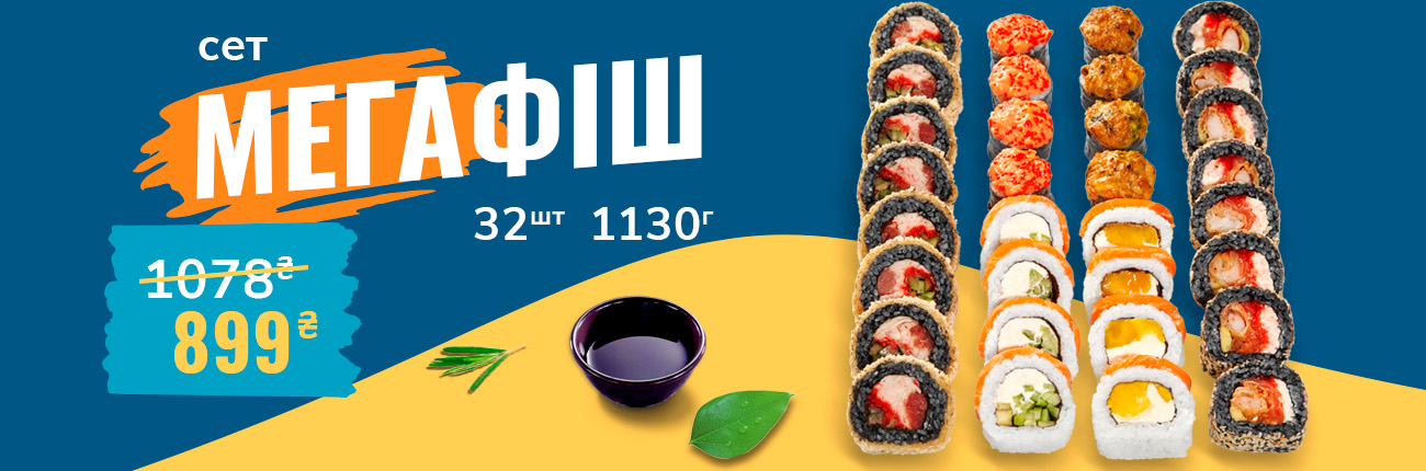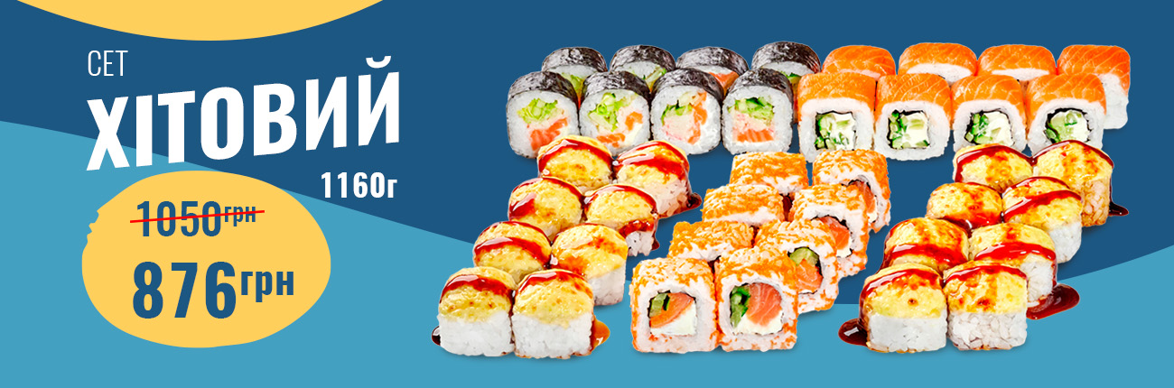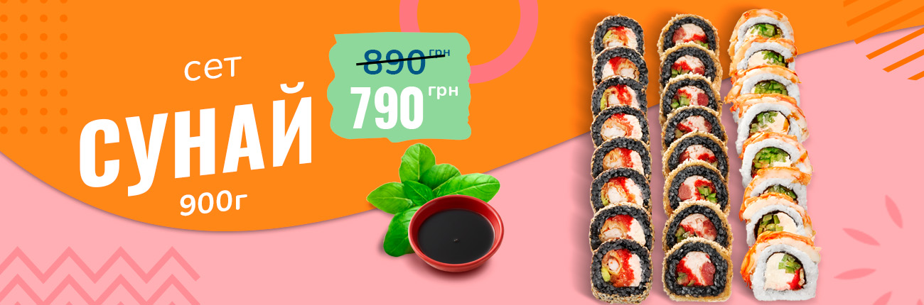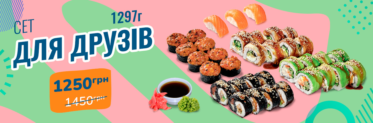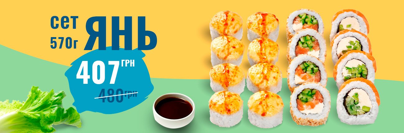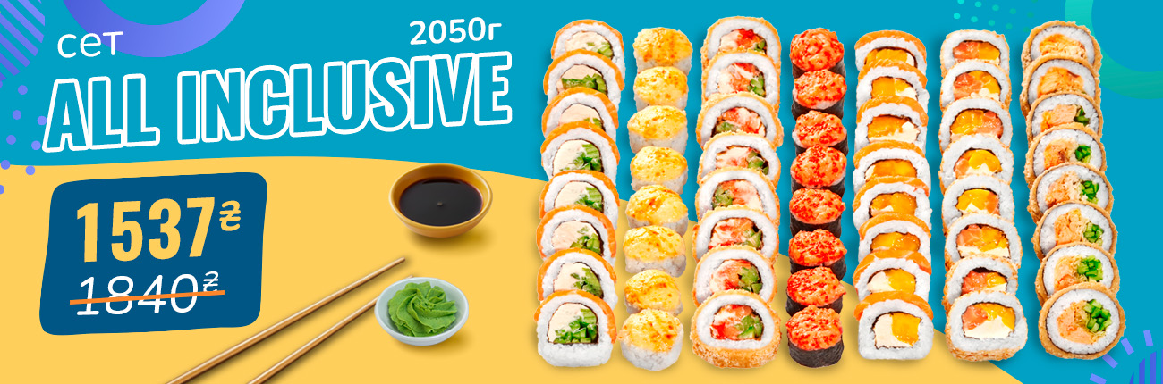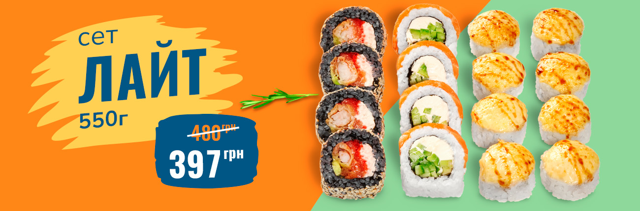 Смажений з лососем, Сяке темпура, Ніжний з лососем, Запечений з лососем, Каліфорнія манго, Філадельфія з лососем, Філадельфія з манго
